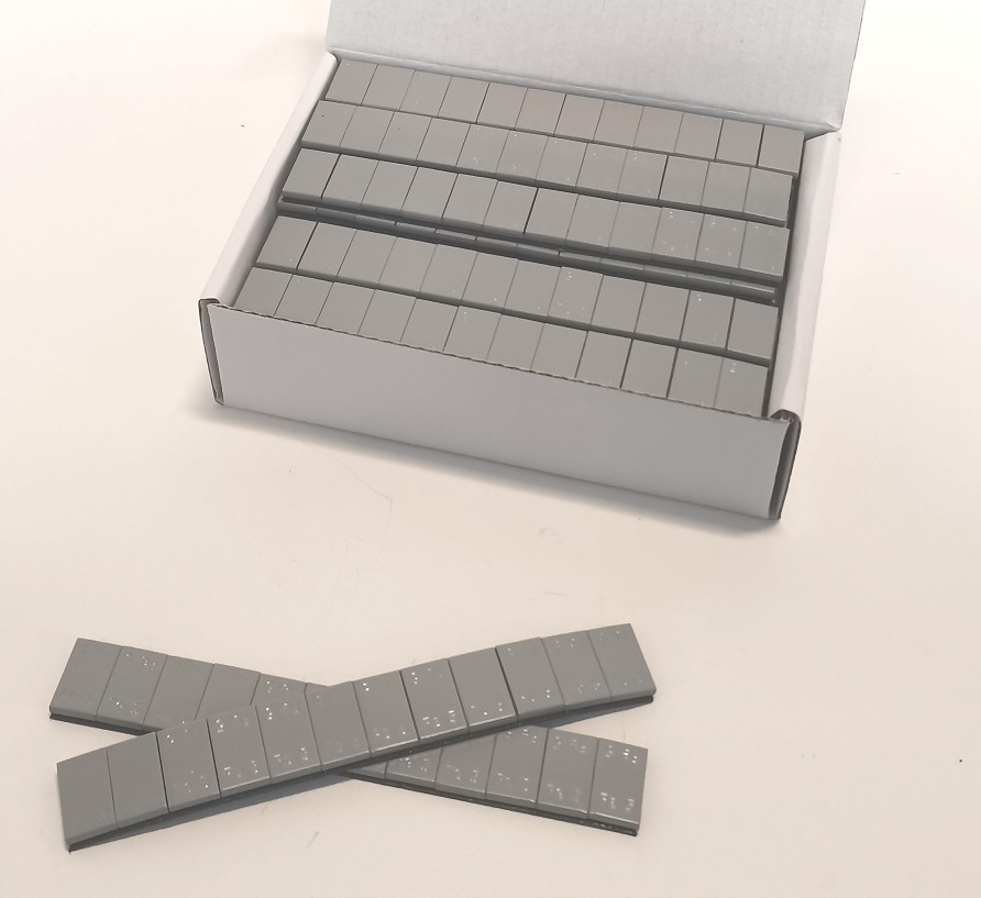 Lys grå coatede FE klæbeklodser 100 strimler a 12x5 gr = 6 kg